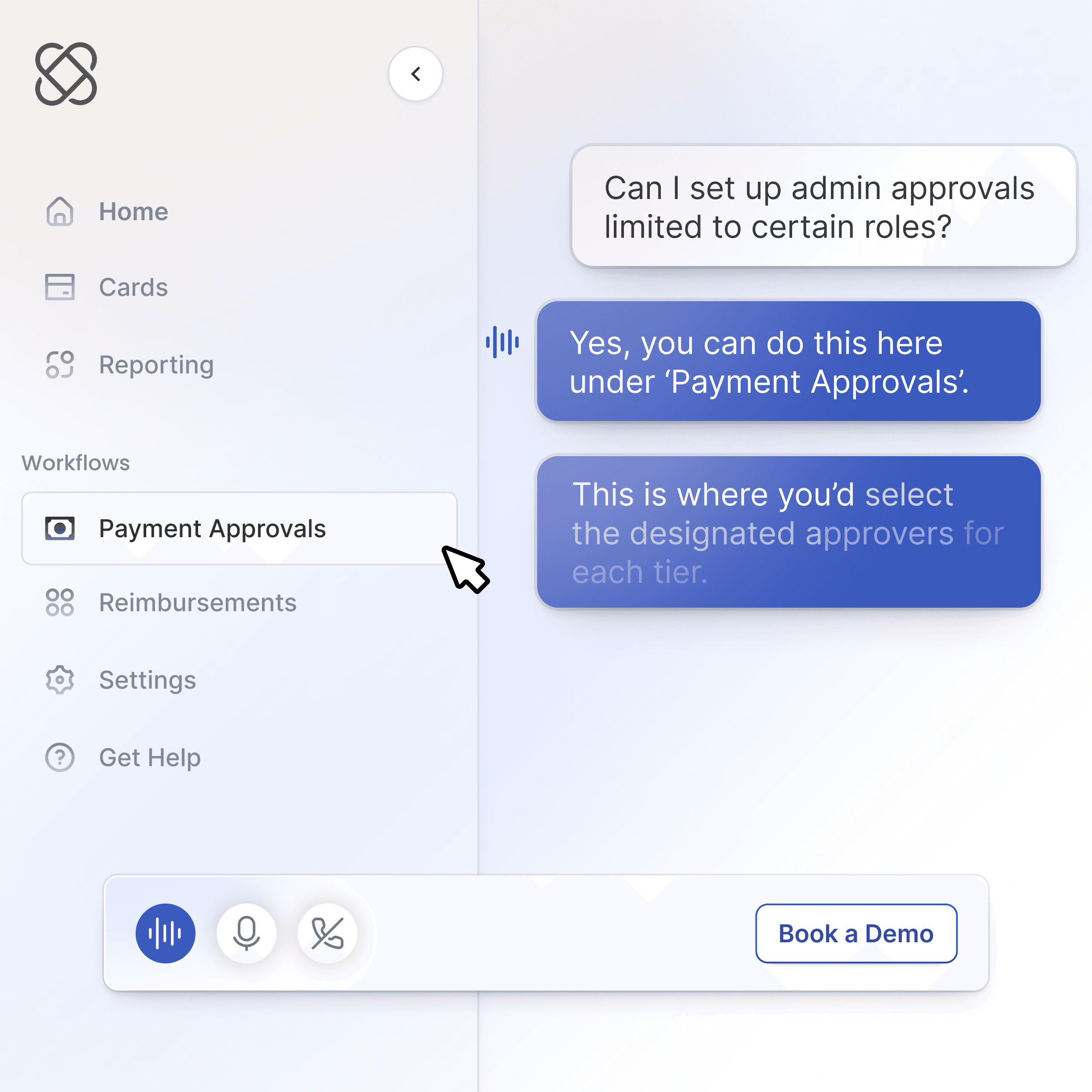 On-brand conversations via chat or voice, with shared context that carries across interactions.