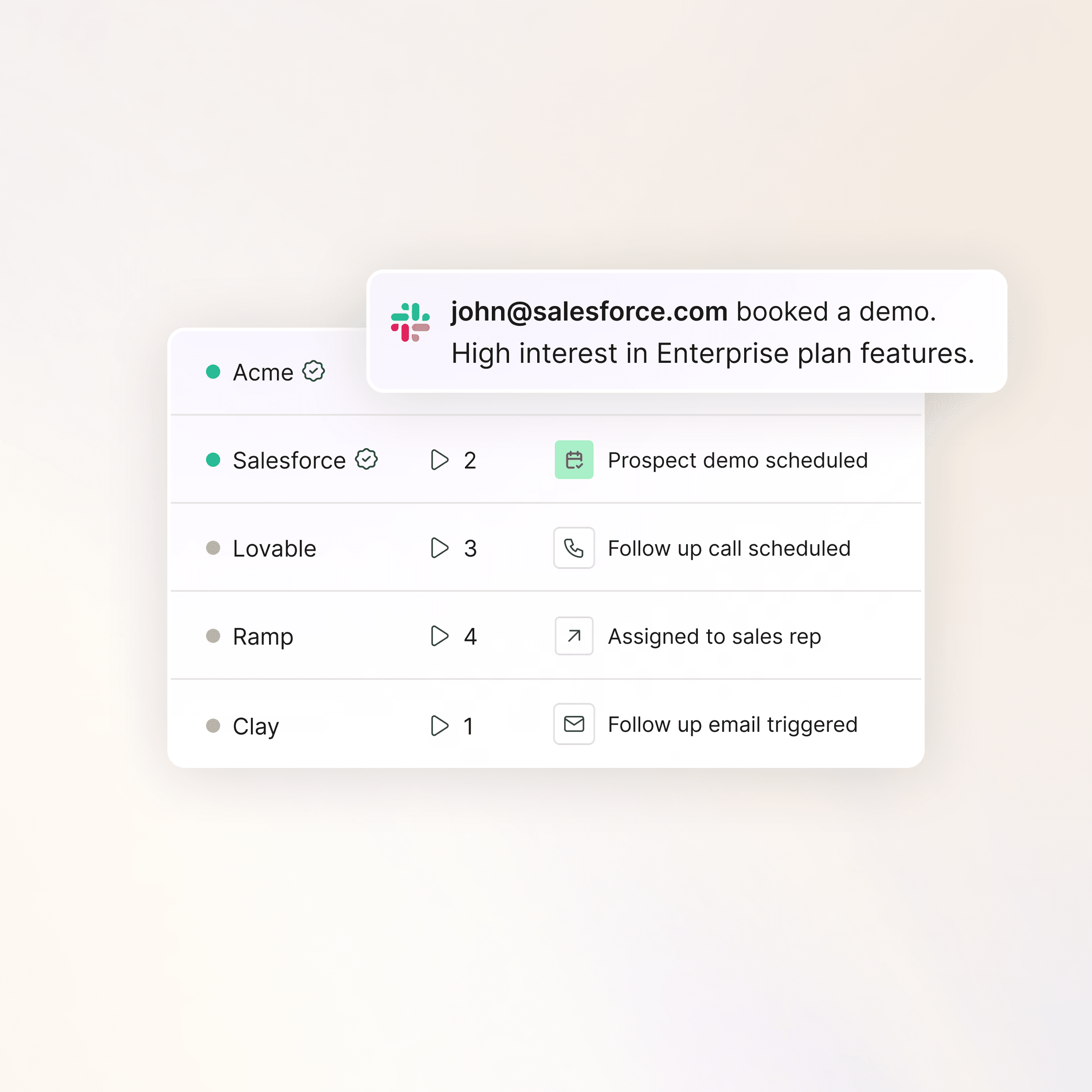 See who’s engaging with your demo in real time, what they care about, and trigger the right follow-up so nothing gets lost after the demo.