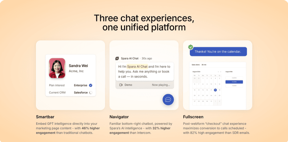 Spara is best for revenue teams that want to cut down on manual lead qualification and turn inbound website traffic into booked meetings through personalized customer experience.