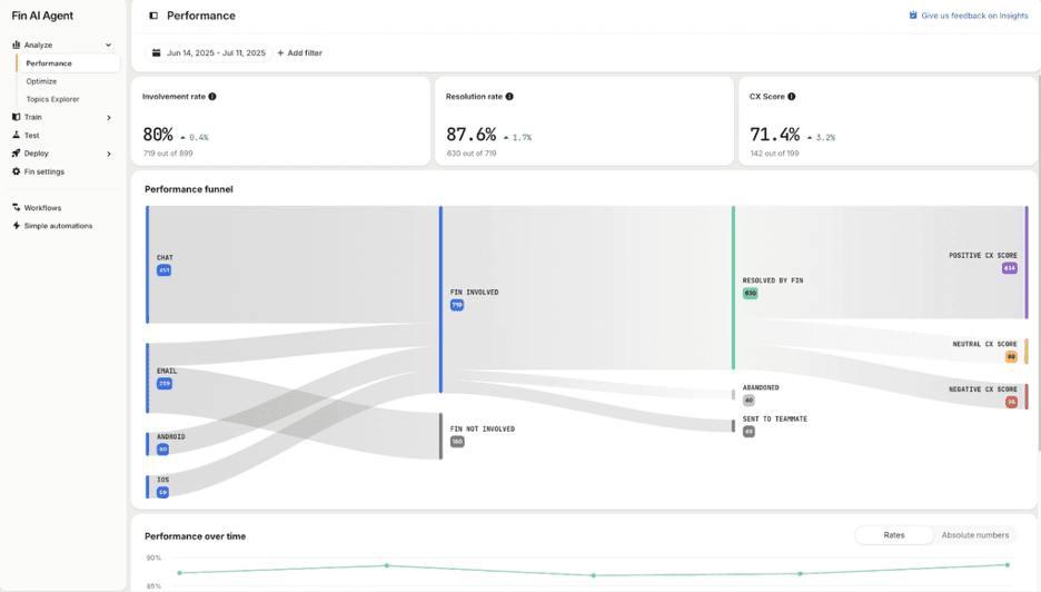 Why it stands outIntercom’s biggest draw is its Fin AI Agent. With an average resolution rate of 57%, Fin answers queries and takes action in any language, on any channel, and knows exactly when to collaborate, escalate, and hand off to your sales team.
